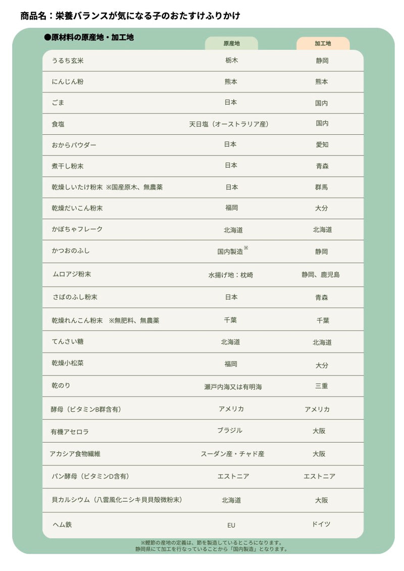 このふりかけは、偏食気味・イライラしがちな3歳〜11歳の子どもたちに不足している栄養をサポートするよう設計しています。